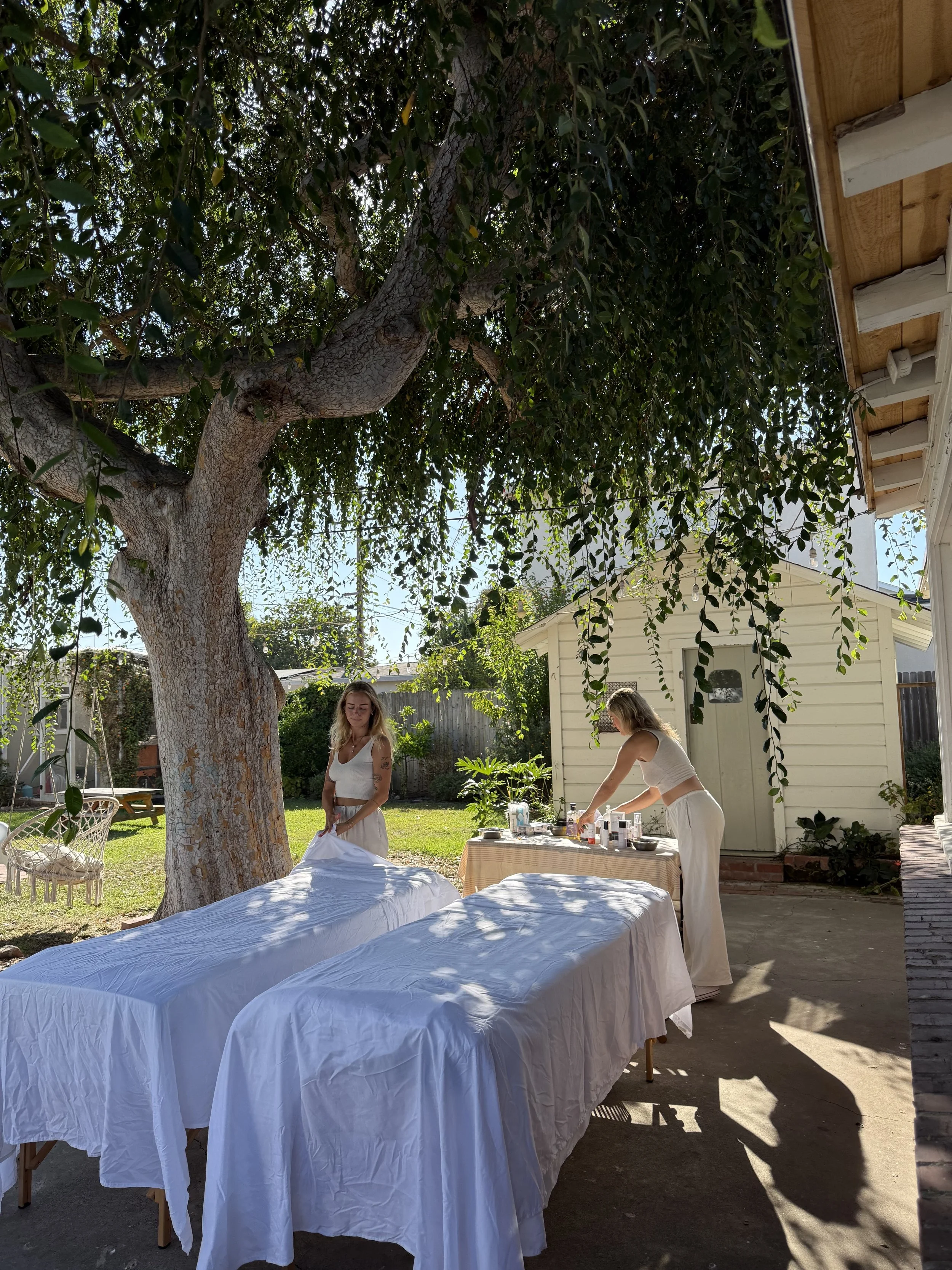 All we need is a clean, private space for treatment setup (living room, patio, backyard or other suitable area). The space needs to be able to allow for both treatment tables to be set up next to each other.